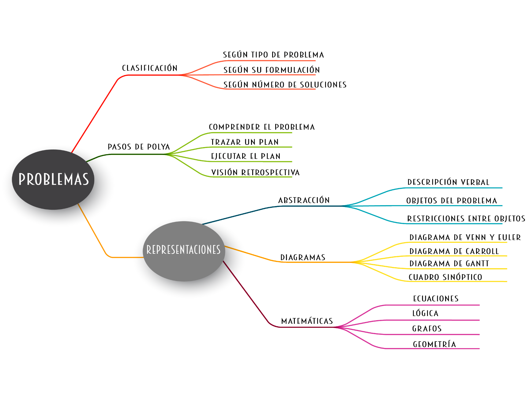 En nuestra materia de Introducción a la Programación nos centraremos en actividades teórico-prácticas, en las cuales en forma reiterada abordaremos problemas de complejidad incremental. Este apunte detalla varios aspectos relacionados con el concepto de problemas. La sección 2 describe tres categorías de problemas que nos permitirán utilizar términos y vocabulario en el tema. La sección 3 introduce un método muy simple para resolver problemas cuyo autor es George Polya [Polya, 1973]. La sección 4 desarrolla el tema de representaciones utilizadas al resolver problemas. Estas representaciones nos ayudarán a esquematizar los objetos y relaciones del problema.
